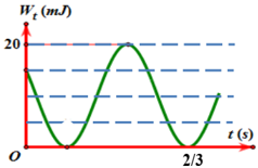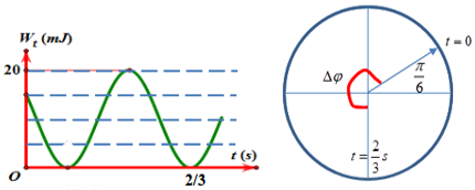 Một vật có khối lượng 400g dao động điều hòa có đồ thị thế năng theo thời gian như hình vẽ. Lấy \({\pi ^2} = 10\). Trong một chu kì, thời gian giá trị của lực phục hồi nhỏ hơn \(0,4\sqrt 3 N\) là