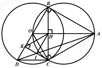 c) Kẻ đường kính \(BD\), từ \(C\) kẻ \(CK\) vuông góc với \(BD\) tại \(K\), gọi \(I\) là giao điểm của \(AD\) và \(CK\). Chứng minh rằng: \(CD//AO\) và \(I\) là trung điểm của \(CK\).