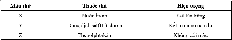 Trong giờ thực hành, một học sinh tiến hành thí nghiệm với các dung dịch X, Y, Z và ghi lại hiện tượng ở bảng sau: