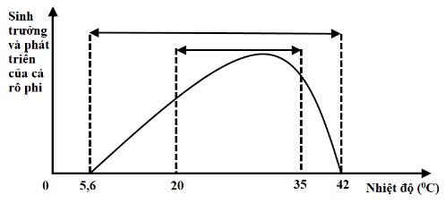 Giới hạn sinh thái về nhiệt độ của cá rô phi nuôi ở Việt Nam được mô tả ở hình bên. Khoảng giá trị từ 20℃ đến 35℃ được gọi là