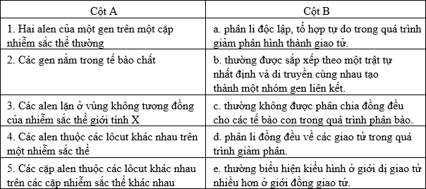 Trong các tổ hợp ghép đôi ở các phương án dưới đây, phương án nào đúng?