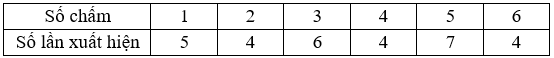 Tung một con xúc xắc 30 lần, kết quả số chấm xuất hiện trên mặt xúc xắc được ghi lại như trong bảng sau: