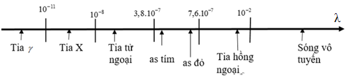 Trong chân không, các bức xạ được sắp xếp theo thứ tự bước sóng giảm dần là