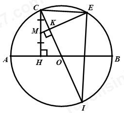 Cho đường tròn (O) đường kính AB, C là điểm bất kỳ trên đường tròn (C khác A, B). Gọi H là hình chiếu của C trên AB, M là trung điểm của CH. Kẻ tia MK vuông góc với CO (K thuộc OC) cắt đường tròn (O) tại E. Kẻ đường kính CI của đường tròn (O) . Chứng minh: