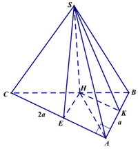 - Kẻ \(HK,\,\,HE\) lần lượt vuông góc với AB, AC. Chứng minh \(\angle SKH = \angle SEH = {60^0}\) .