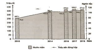 Cho biểu đồ về nước mắm và thủy sản đóng hộp của Việt Nam, giai đoạn 2010 - 2018: