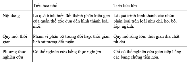 Theo điểm thuyết tiến hóa hiện đại, tiến hóa nhỏ là quá trình