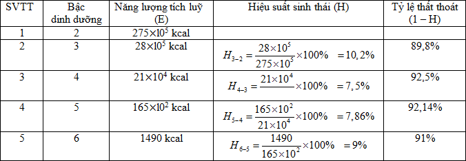 Tỉ lệ thất thoát năng lượng = 1 – Hiệu suất sinh thái