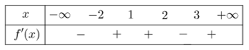 Cho hàm số \(y = f\left( x \right)\) có đạo hàm \(f'\left( x \right) = 2{\left( {x - 1} \right)^2}\left( {x - 3} \right)\left( {{x^2} - 4} \right)\) với mọi \(x \in {\bf{R}}\). Số điểm cực tiểu của hàm số đã cho là