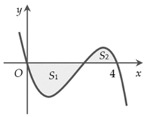 Cho hàm số \(y = f\left( x \right)\) liên tục trên \({\bf{R}}\) và có đồ thị như hình bên. Biết rằng các diện tích \({S_1},\,\,{S_2}\) thỏa mãn \({S_1} = 2{S_2} = 3\). Tích phân \(\int\limits_0^4 {f\left( x \right)dx} \) bằng