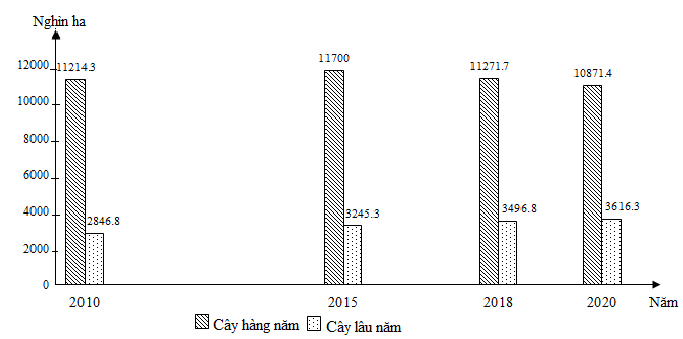 Cho biểu đồ về cây hàng năm và cây lâu năm của nước ta giai đoạn 2015-2020Biểu đồ trên