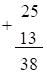 Vậy \(25 + 13 = 38\).