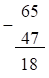 Vậy \(65 - 47 = 18\).