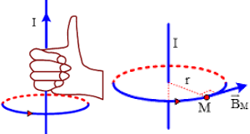 Sử dụng quy tắc nắm bàn tay phải xác định chiều cảm ứng từ sinh ra bởi dây dẫn thẳng dài:
