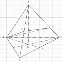 Cho khối chóp tam giác đều \(S.ABC\)có cạnh đáy bằng \(a\), cạnh bên bằng \(2a\). Gọi \(M\)là trung điểm của\(SB\), \(N\) là một điểm trên đoạn \(SC\) sao cho \(NS = 2NC\). Tính thể tích khối chóp\(A.BCNM\)?