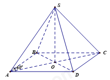 - Sử dụng tỉ số lượng giác của góc nhọn trong tam giác vuông tính SO.