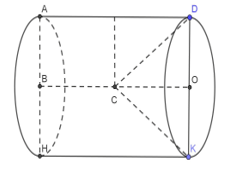 Cho hình thang \(ABCD\) vuông tại \(A,\;B\) với \(AB = BC = \dfrac{{AD}}{2} = a\). Quay hình thang và miền