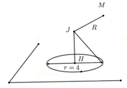 - Giải hệ \(\left\{ \begin{array}{l}J{H^2} + {r^2} = {R^2}\\J{M^2} = {R^2}\end{array} \right.\) tìm p, với R là bán kính mặt cầu (T).