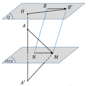 Trong không gian Oxyz, cho hai điểm \(A\left( { - 1;2;3} \right)\) và \(B\left( {3;2;5} \right)\). Xét hai điểm M và N thay đổi thuộc mặt phẳng \(\left( {Oxy} \right)\) sao cho \(MN = 2023\). Tìm giá trị nhỏ nhất của \(AM + BN\).