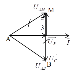 Đặt điện áp \(u = 220\sqrt 2 \cos 100\pi t\,\,\left( V \right)\) vào hai đầu đoạn mạch AB gồm hai đoạn mạch AM và MB mắc nối tiếp. Đoạn AM gồm điện trở thuần R mắc nối tiếp với cuộn cảm thuần L, đoạn MB chỉ có tụ điện C. Biết điện áp giữa hai đầu đoạn mạch AM và điện áp giữa hai đầu đoạn mạch MB có giá trị hiệu dụng bằng nhau nhưng lệch pha nhau \(\dfrac{{2\pi }}{3}\). Điện áp hiệu dụng giữa hai đầu đoạn mạch AM bằng