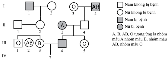 III. II2 và II4 có thể có nhóm máu A hoặc B.