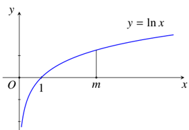 Cho \(D\) là hình phẳng giới hạn bởi đồ thị hàm số \(y = \ln x\), trục hoành và hai đường thẳng \(x = 1\) và \(x = m\), với \(m > 1\). Khi hình phẳng \(D\) có diện tích bằng 1, giá trị của \(m\) thuộc khoảng nào dưới đây?