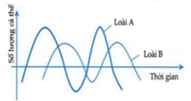Hình bên mô tả sự biến động số lượng cá thể của hai loài A và B. Có bao nhiêu phát biểu sau đây đúng khi nói về hai loài A và B.