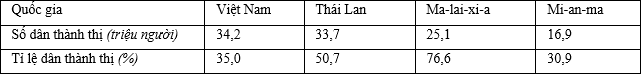 (Nguồn: Niên giám thống kê Việt Nam 2020, NXB Thống kê, 2021)Theo bảng số liệu, cho biết quốc gia nào sau đây có số dân đông nhất?