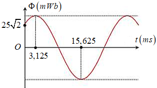 Hình vẽ bên là đồ thị biểu diễn sự biến thiên của từ thông qua một cuộn dây theo thời gian. Suất điện động cực đại được sinh ra trong cuộn dây bằng