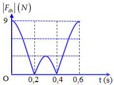 Một con lắc lò xo treo thẳng đứng có độ lớn lực đàn hồi của lò xo biến đổi theo thời gian như hình vẽ bên. Lấy \(g = 10{\mkern 1mu} {\mkern 1mu} m/{s^2},{\mkern 1mu} {\mkern 1mu} {\pi ^2} = 10\). Cơ năng dao động của vật bằng