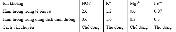 So sánh nồng độ ion khoáng ở trong dung dịch và trong rễ để biết ion khoáng đó được vận chuyển theo cách chủ động hay thụ động.