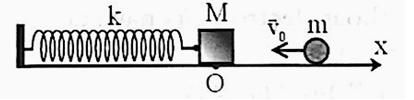 Cho cơ hệ như hình vẽ, lò xo lý tưởng có độ cứng k =100 N/m được gắn chặt ở tường tại Q, vật M = 200g được gắn với lò xo bằng một mối hàn, vật M đang ở vị trí cân bằng thì vật m =50 g bay tới dưới vận tốc v = 2 m/s va chạm mềm với vật M. Sau va chạm hai vật dính liền với nhau và dao động điều hòa. Bỏ qua ma sát giữa các vật với mặt phẳng ngang. Sau một thời gian dao động, mối hàn gắn giữa M và lò xo bị lỏng dần, ở thời điểm t hệ vật đang ở vị trí lực nén của lò xo vào Q cực đại. Biết rằng, kể từ thời điểm t mối hàn có thể chịu được một lực nén tùy ý nhưng chỉ chịu được một lực kéo tối đa là 1 N. Sau khoảng thời gian ngắn nhất là bao nhiêu (tính từ thời điểm t) mối hàn sẽ bị bật ra?
