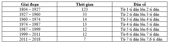 - Xu hướng thay đổi quy mô dân số thế giới trong thời kì 1804-2018.