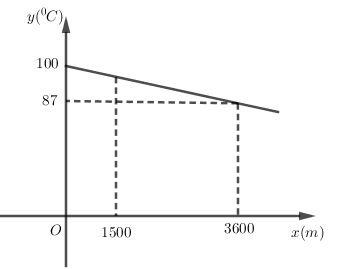 Nhiệt độ sôi của nước không phải lúc nào cũng là \({100^0}C\) mà phụ thuộc vào độ cao của nơi đó so với mực nước biển. Chẳng hạn Thành phố Hồ Chí Minh có độ cao xem như ngang mực nước biển \(\left( {x = 0\,m} \right)\) thì nước có nhiệt độ sôi là \(y = {100^0}C\) nhưng ở thủ đô La Paz của Bolivia, Nam Mỹ có độ cao \(x = 3\,600\,m\) so với mực nước biển thì nhiệt độ sôi của nước là \(y = {87^0}C\). Ở độ cao trong khoảng vài \(km\), người ta thấy mối liên hệ giữa hai đại lượng này là một hàm số bậc nhất \(y = ax + b\) có đồ thị như sau:
