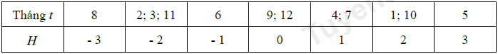 Đầu tiên, ta tính giá trị của biểu thức \(T = n + H,\) ở đây \(H\) được xác định bởi bảng sau: