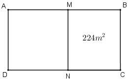 Nửa chu vi hình vuông hơn nửa chu vi ban đầu một đoạn bằng MB, diện tích MBNC bằng \(224{m^2}.\) Ta tính được BC, AB sau đó tính diện tích thửa đất ban đầu.