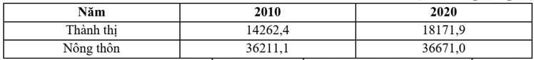 Cho bảng số liệu: LỰC LƯỢNG LAO ĐỘNG TỪ 15 TUỔI TRỞ LÊN PHÂN THEO THÀNH THỊ, NÔNG THÔN Ở