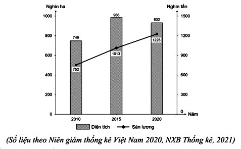 Cho biểu đồ cao su của nước ta giai đoạn 2010 - 2020:Biểu đồ thể hiện nội dung nào sau