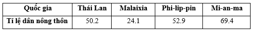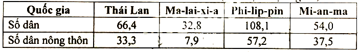 Cho bảng số liệu:SỐ DÂN VÀ SỐ DÂN NÔNG THÔN CỦA MỘT SỐ QUỐC GIA NĂM 2019 (Nguồn: Niên giám