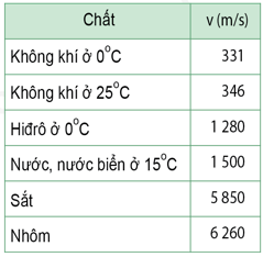 Bảng tốc độ truyền âm thanh trong một số môi trường: