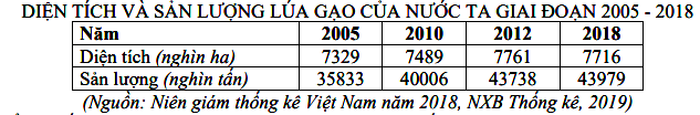 Cho bảng số liệu:Để thể hiện tốc độ tăng trưởng diện tích, sản lượng và năng suất