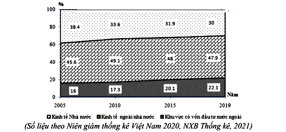 Cho biểu đồ về GDP phân theo thành phần kinh tế của nước ta, giai đoạn 2005 – 2019:Biểu đồ
