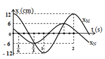 Hai điểm sáng M và N dao động điều hòa trên trục Ox với đồ thị li độ phụ thuộc thời gian như hình hình bên. Kể từ t = 0, thời điểm mà hai điểm sáng cách nhau \(3\sqrt 6 \,\,cm\) lần thứ 2022 có giá trị gần nhất với giá trị nào sau đây?