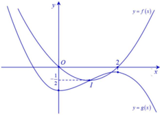 Cho đồ thị hàm số \(y = f\left( x \right)\) và \(y = g\left( x \right)\) như hình vẽ bên dướiBiết