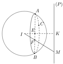 Gọi \(K\) là hình chiếu vuông góc của \(I\) trên \(\left( P \right)\). Khi đó \(K\) cố định và \(IK = d\left( {I,\left( P \right)} \right) = 4\).