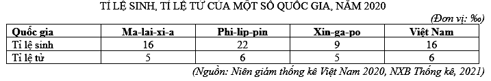 Cho bảng số liệu:Theo bảng số liệu, cho biết quốc gia nào sau đây có tỉ lệ gia tăng dân số