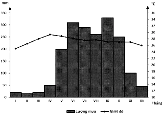Cho biểu đồ NHIỆT ĐỘ VÀ LƯỢNG MƯA TRUNG BÌNH THÁNG CỦA TP HỒ CHÍ MINHTheo biểu đồ, nhận