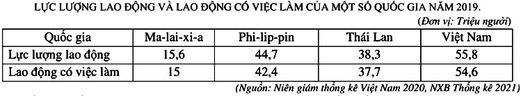 Cho bảng số liệuTheo bảng số liệu, quốc gia nào sau đây có tỉ lệ lao động có việc làm