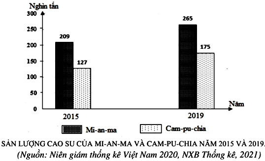 Cho biểu đồTheo biểu đồ, nhận xét nào sau đây đúng về sự thay đổi sản lượng cao su năm