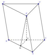 Cho hình lăng trụ \(ABC.A'B'C'\) có tam giác đáy \(ABC\) vuông đỉnh \(A;AB = a,AC = \sqrt 3 a,\)\(A'A = A'B